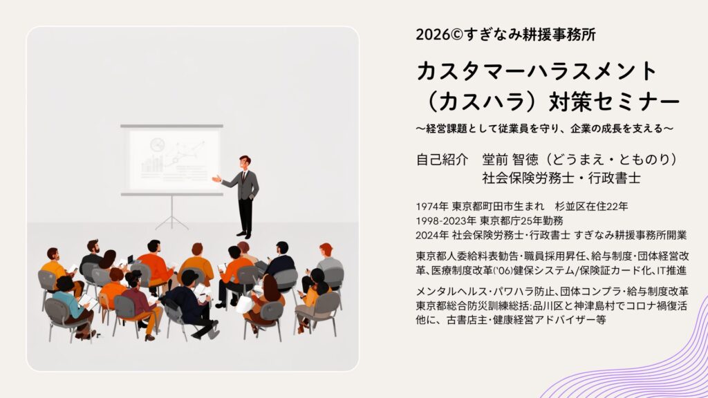 >>更に詳しく 事業主義務化2026年10月経営課題カスハラ防止対策「カス防」都条例準拠奨励金